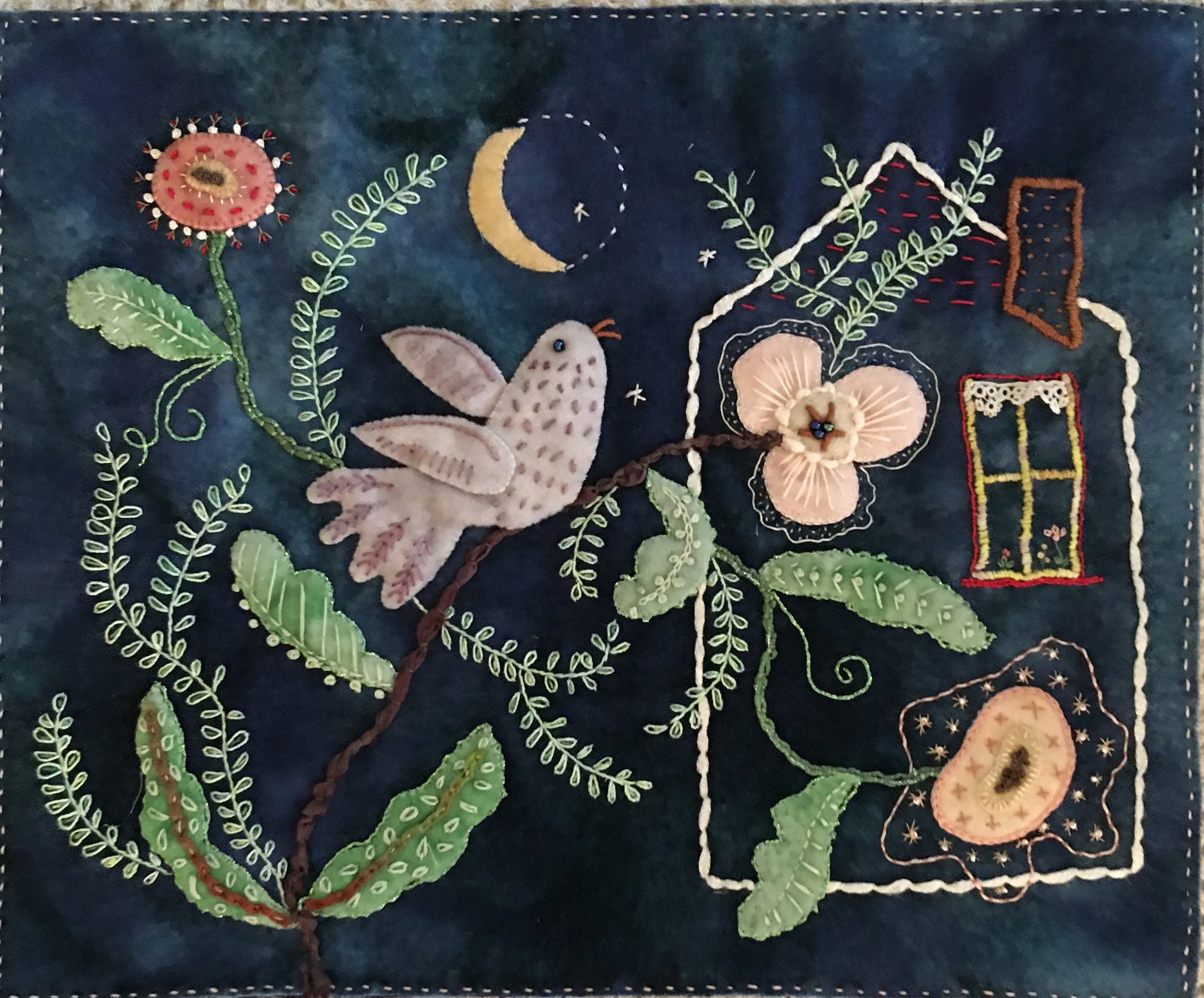 Bring a touch of folk-art charm to your stitching with FEATHERED FRIEND, a delightful wool appliqué pattern perfect for bird lovers and hand-stitchers alike. Featuring a whimsical bird perched among leaves and blooms, this design captures the beauty of nature in cozy, textured wool.