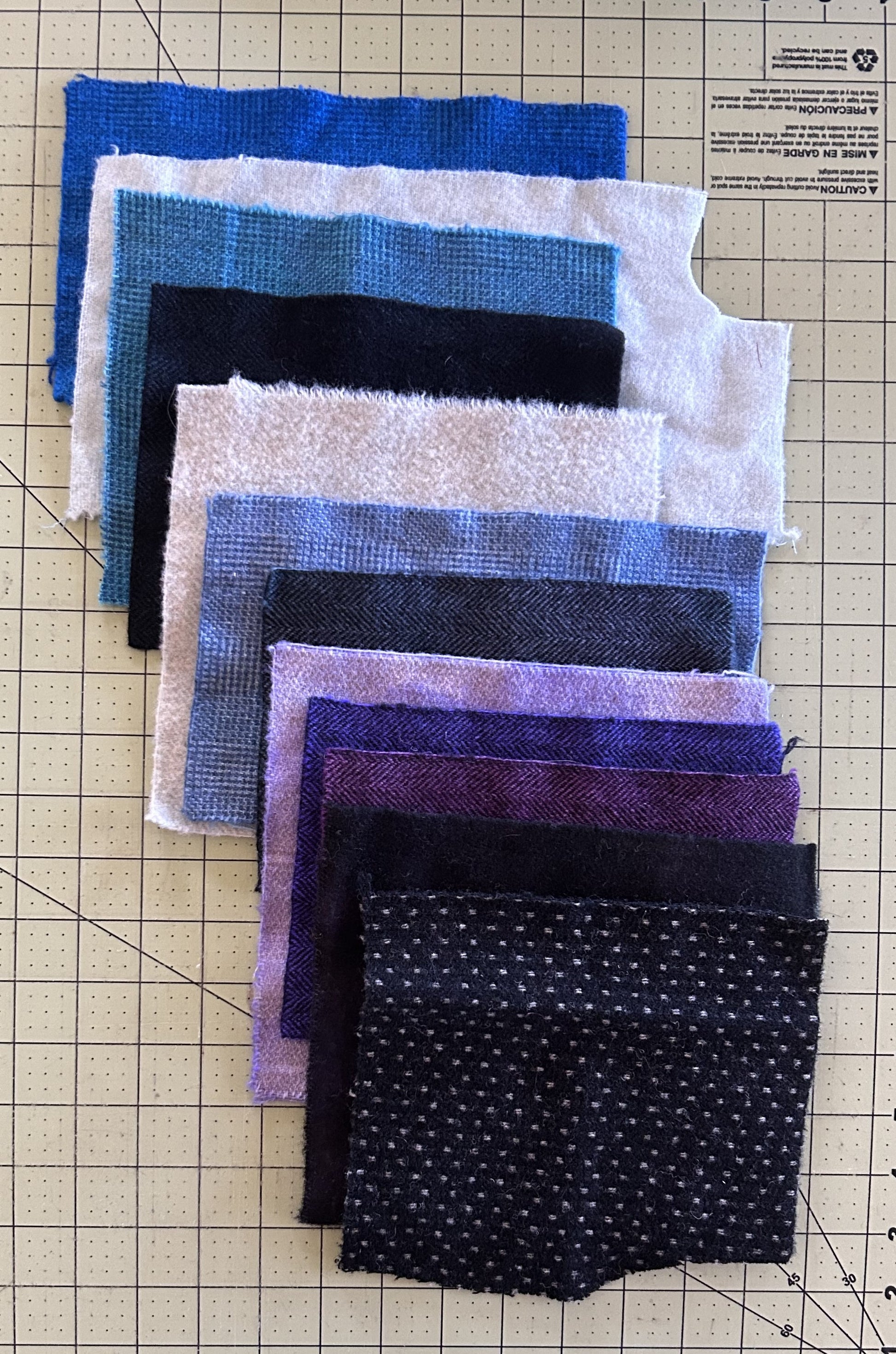 BLUES, PURPLES and BLACK HandDyed Wool Scraps for Wool Applique and Other Craft Projects