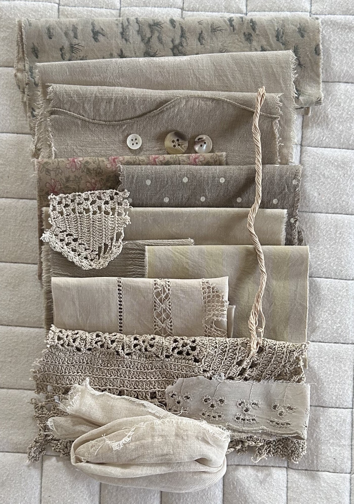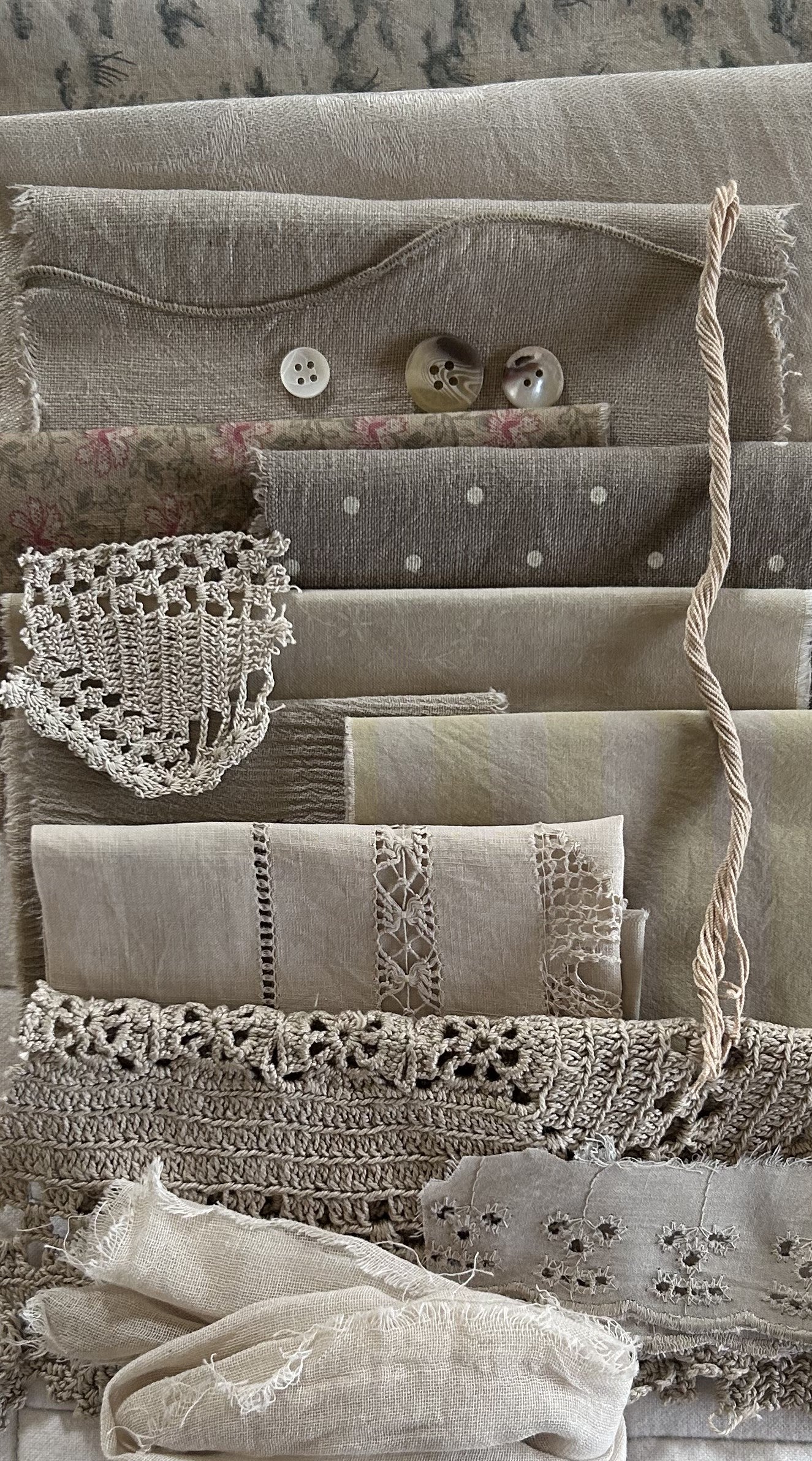 COSMOS Plant Dyed Bundle Which Includes Repurposed Cottons, Linen, Trims and Thread for Slow Stitching Projects