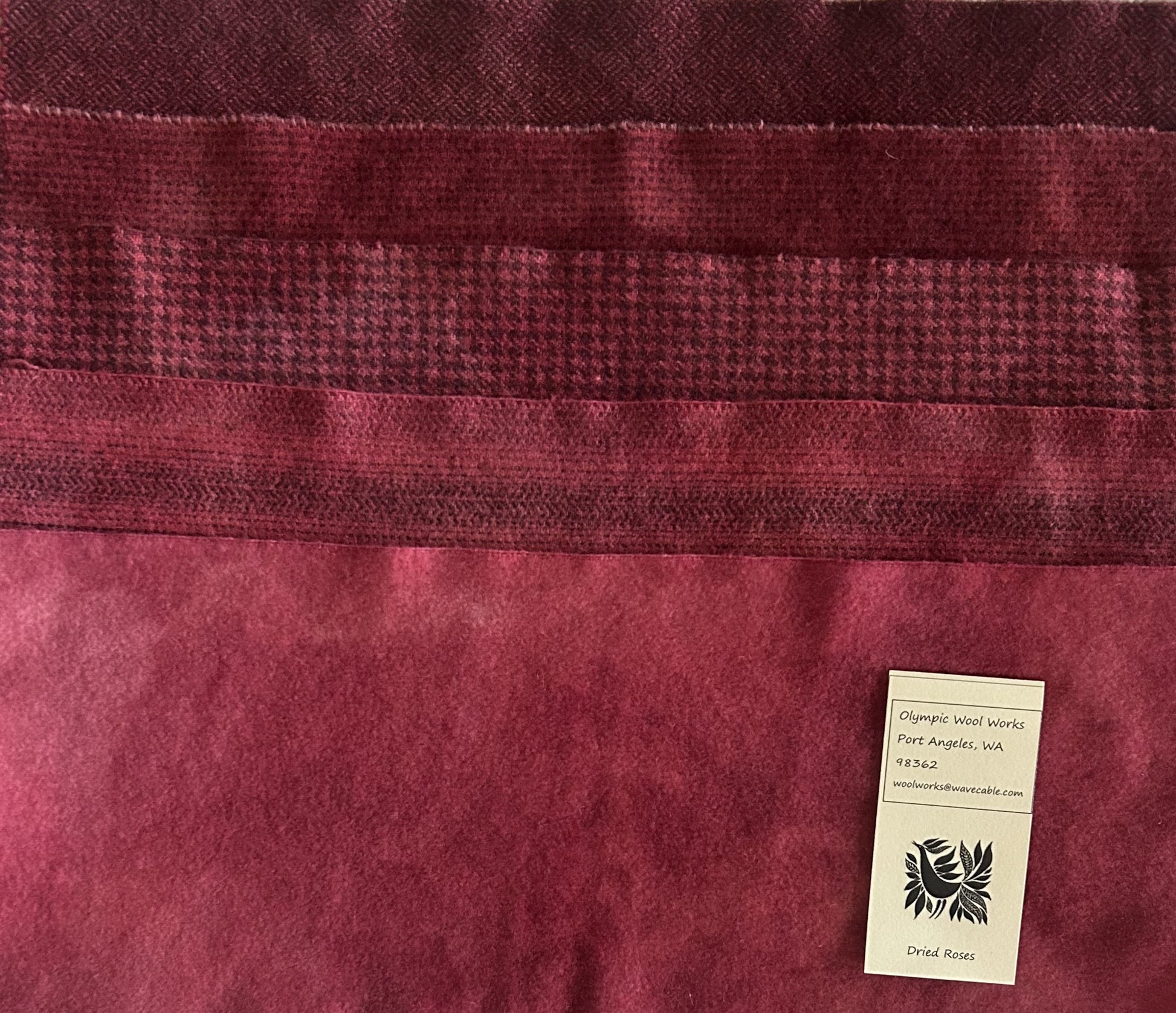 DRIED ROSES Hand Dyed Wool Bundle for Primitive Rug Hooking and Wool Applique