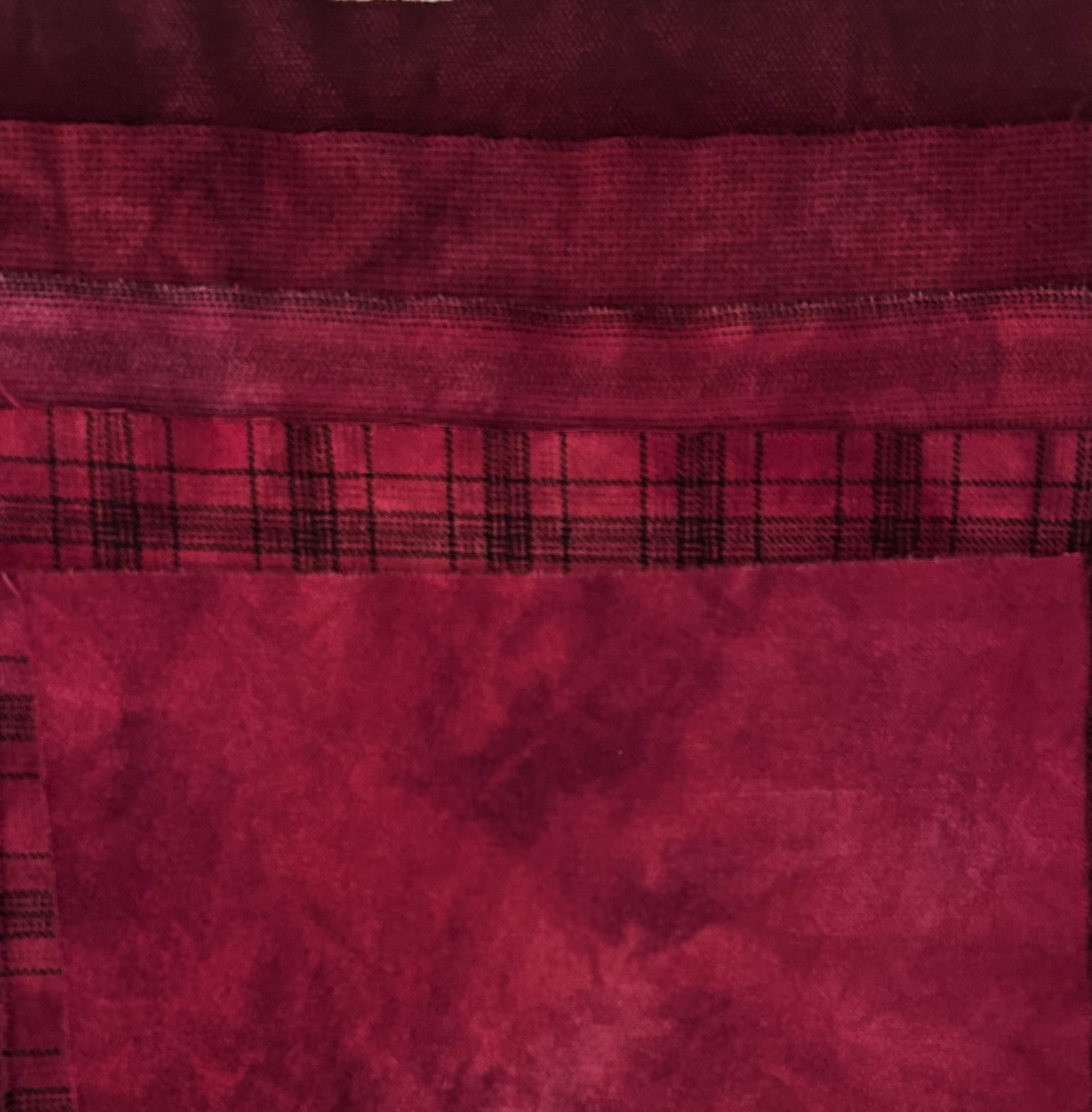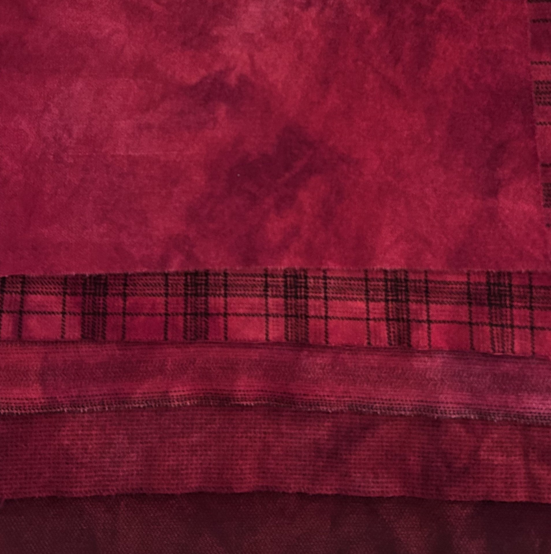 This rich RED VELVET wool bundle is hand dyed in deep, warm shades that bring depth and drama to any project. Perfect for rug hooking, wool appliqué, quilting, and other fiber arts, each piece is one-of-a-kind with subtle variations in tone and texture.