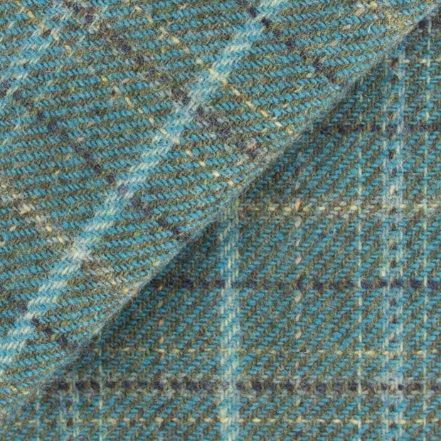 Teal Plaid with Touch of Gold Mill Dyed Wool